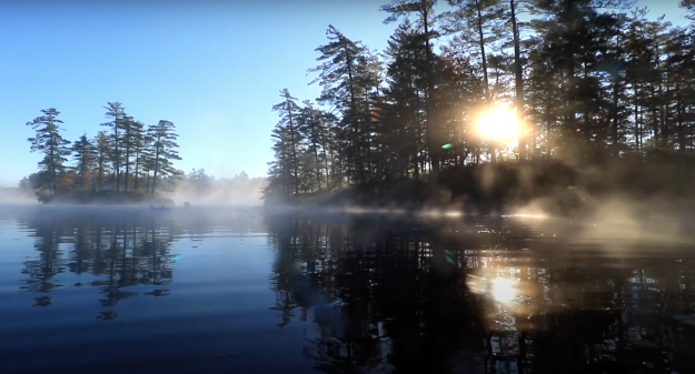 Autumn 2017 – In the mornings in the Adirondacks there is a gorgeous mist and fog. If you get up early you can catch an early morning sunrise peaking through the trees. I was able to jump into our kayak and share some of those experiences form the boat and overhead.