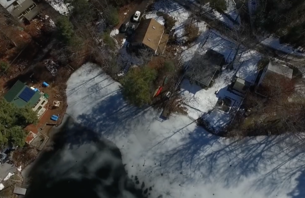 Short flight over a frozen lake in Belchertown, MA. Music by the Kamikaze Hearts.